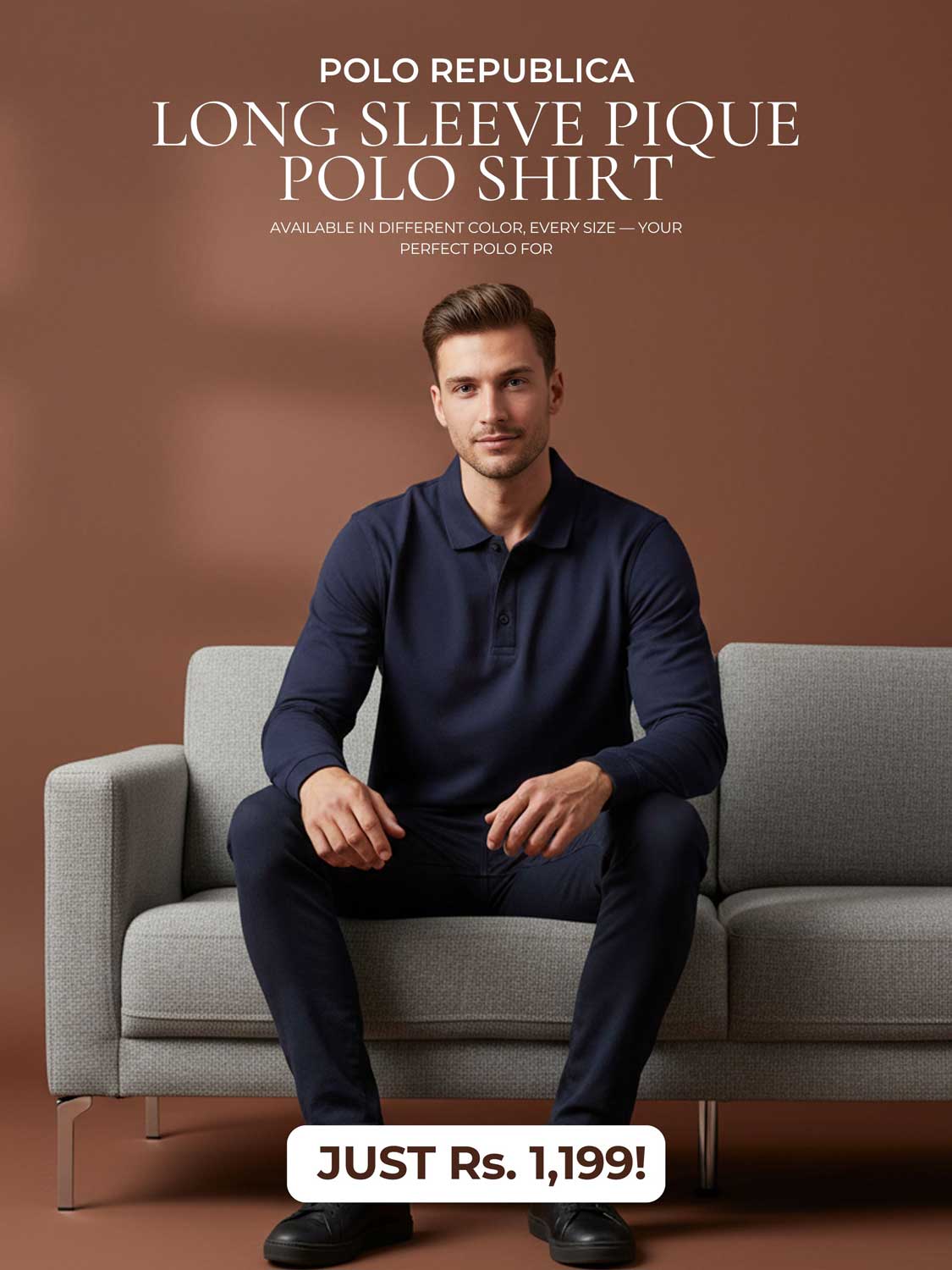 Polo Republica Men's Long Sleeve Pique Polo Shirt