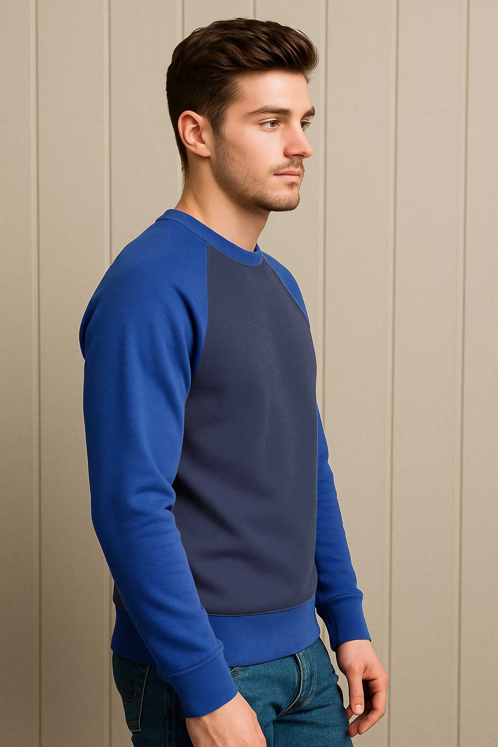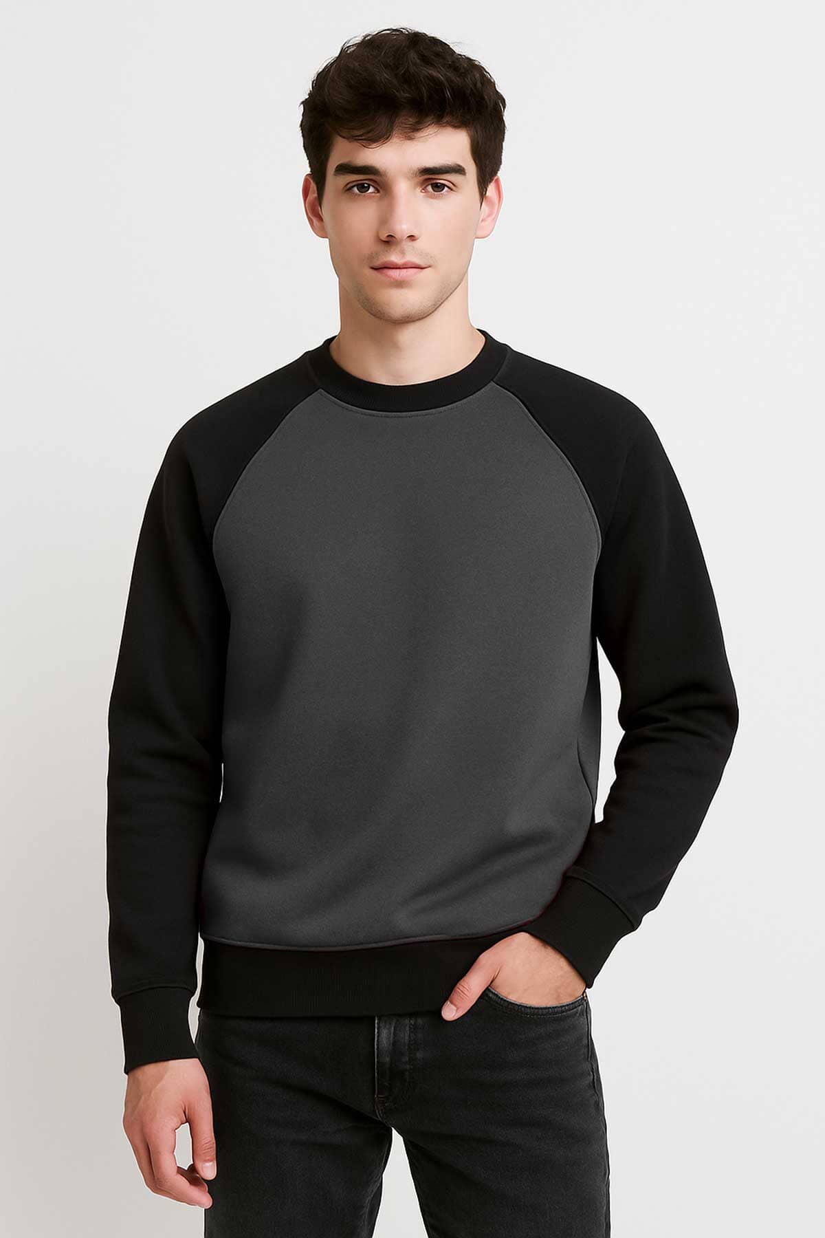 The Men's Raglan Sleeve Fleece Sweatshirt is built for everyday comfort, featuring soft fleece fabric that keeps you warm without feeling heavy.