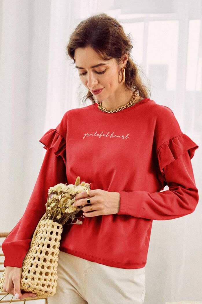 Polo Republica Women's Frill Grateful Embroidered Fleece Sweatshirt
