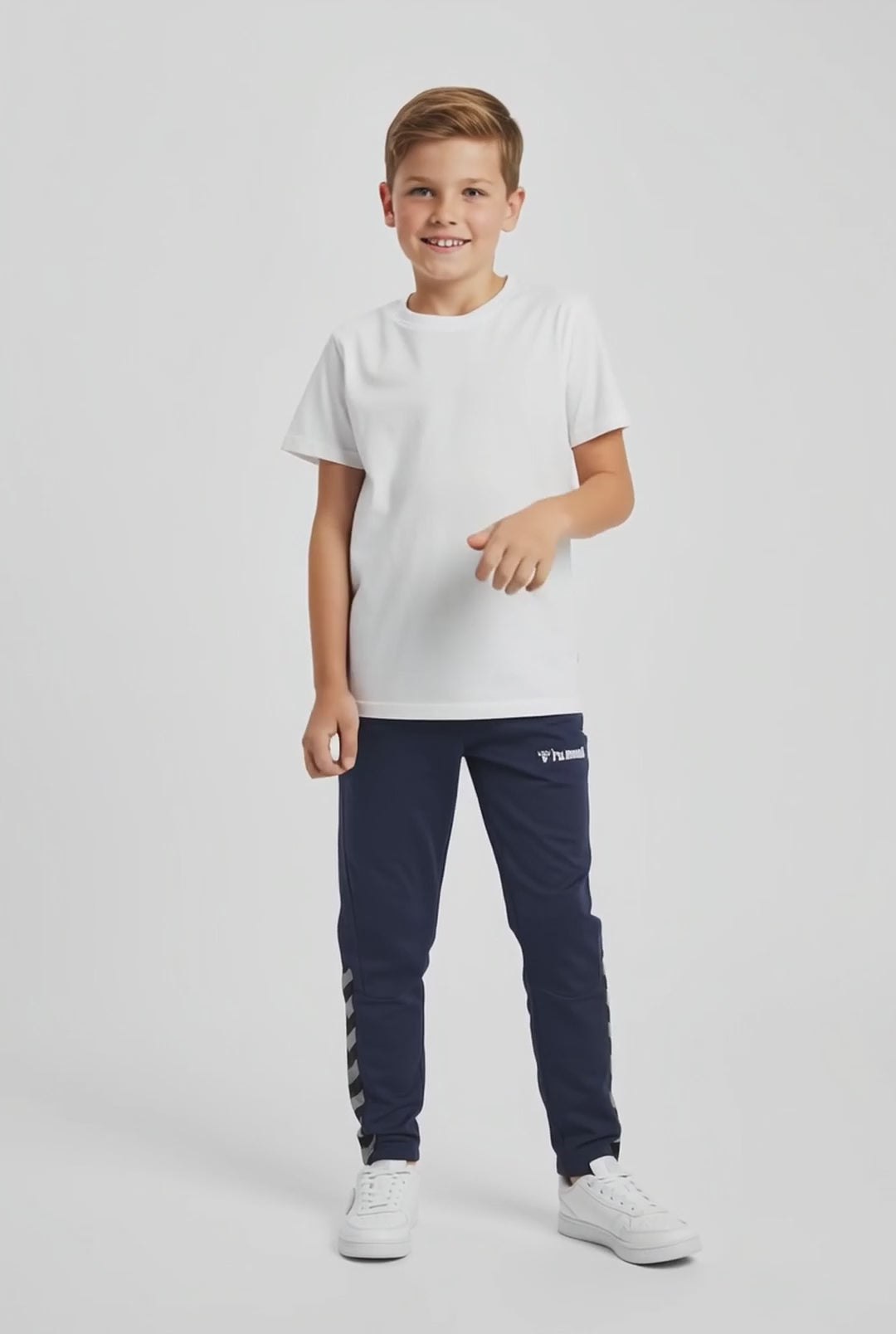 Introducing Hummel Boys Trousers - the perfect combination of comfort and sporty style. Made from 100% polyester, these trousers ensure softness and durability for all-day wear. Stripes at bottom. Let them stay comfortable and stylish during every adventure.🌟