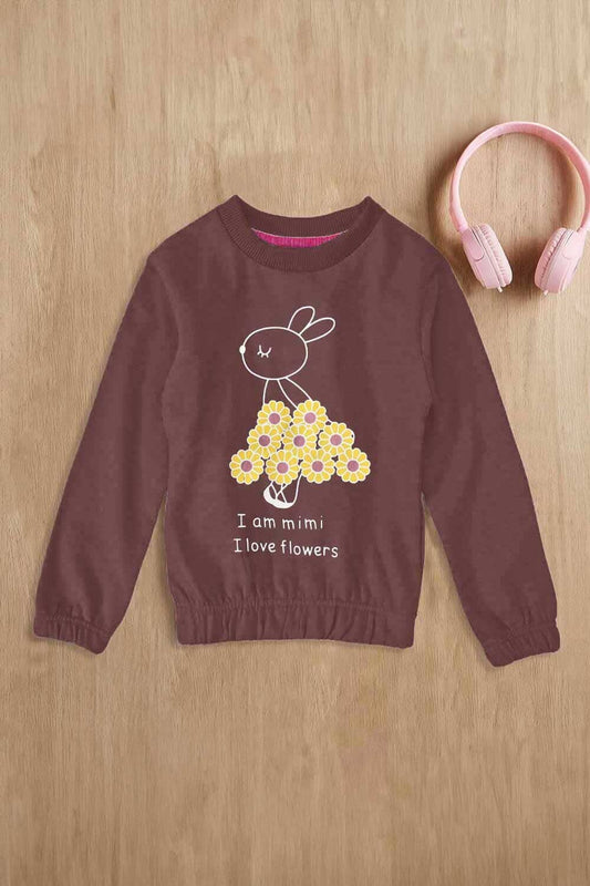 Lyallpur Girl's I Love Flower Printed Sweat Shirt