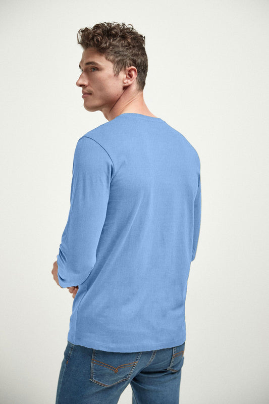 Men's Contrast Design Crew Neck Long Sleeve Tee Shirt
