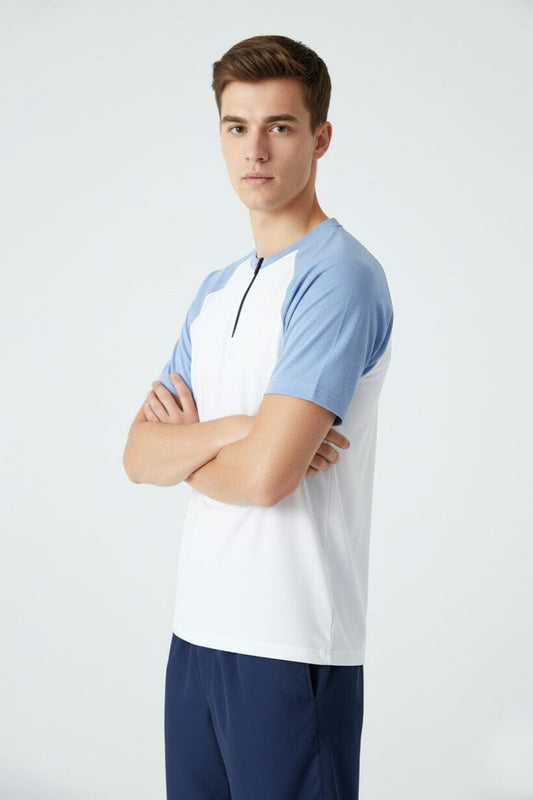 Men's Zipper Placket Raglan Sleeve Tee Shirt