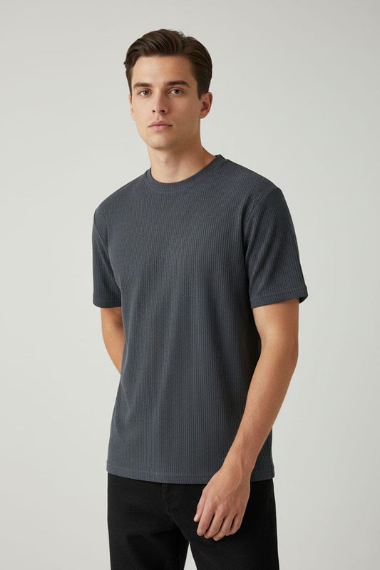 Men's Dry-Fit Self Textured Basic Tee Shirt