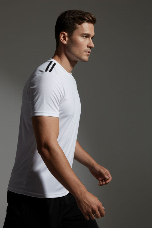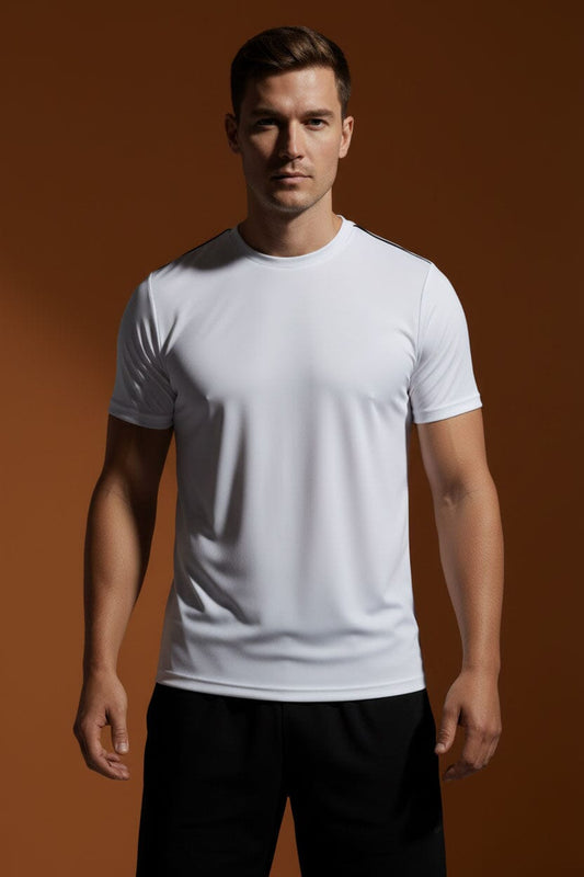 Men's Dry Fit Self Textured Striped Shoulder Minor Fault Tee Shirt