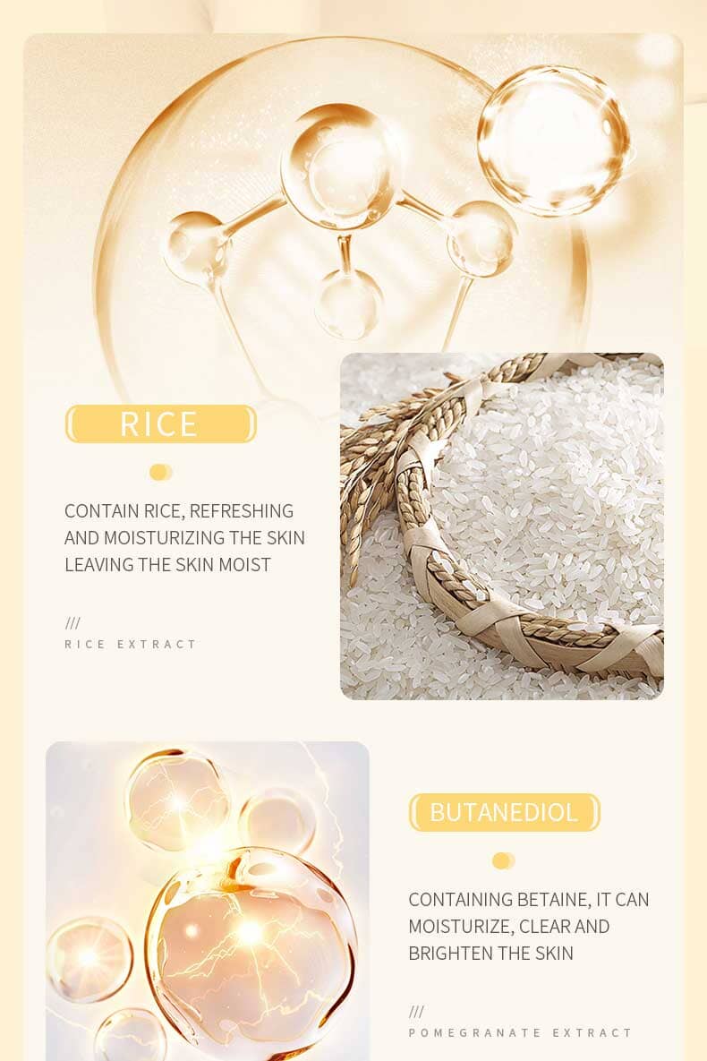 Rice Extract: Rich in antioxidants and nutrients, it helps to brighten and even out skin tone