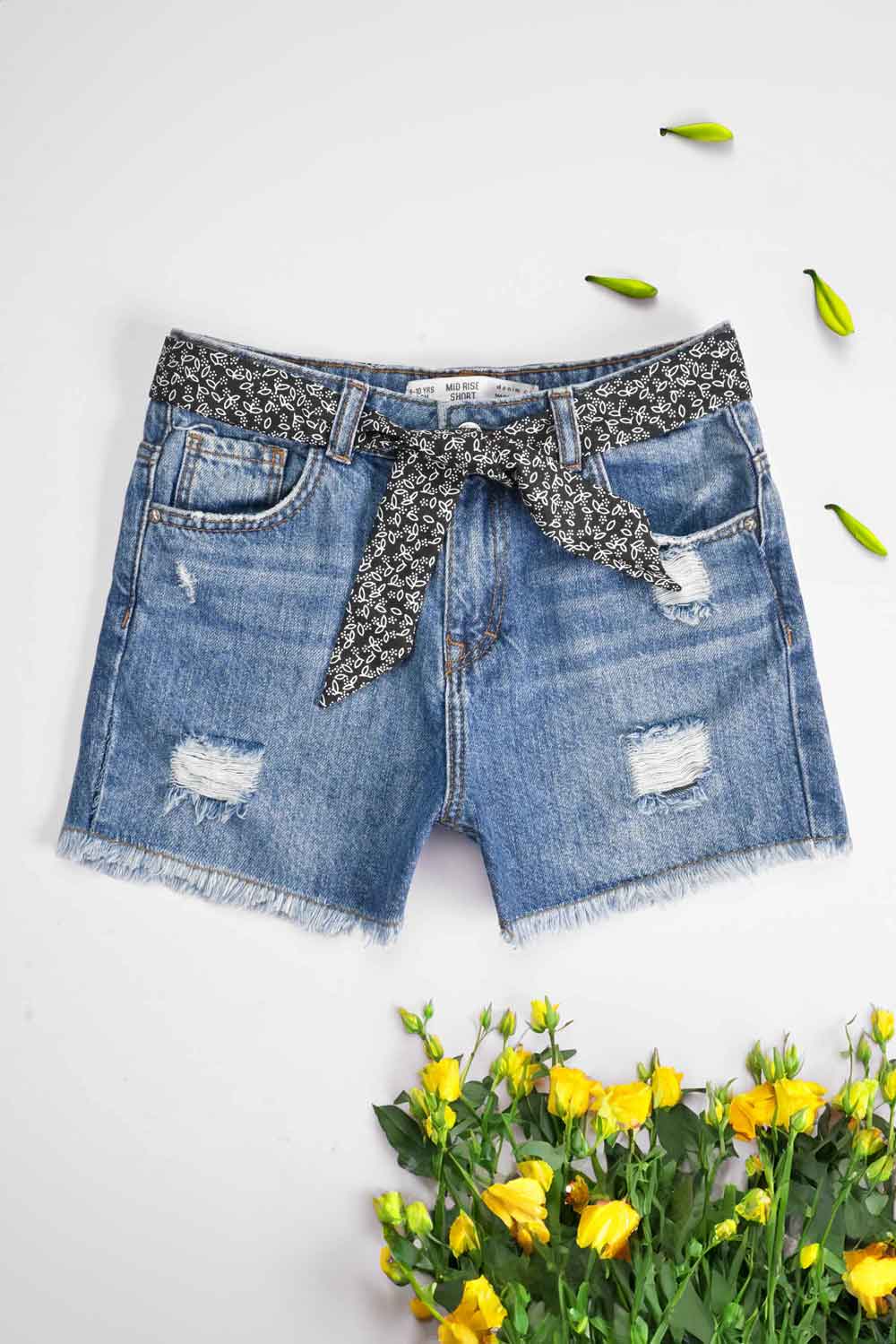 D&Co Girl's Distressed & Belt Style Denim Shorts