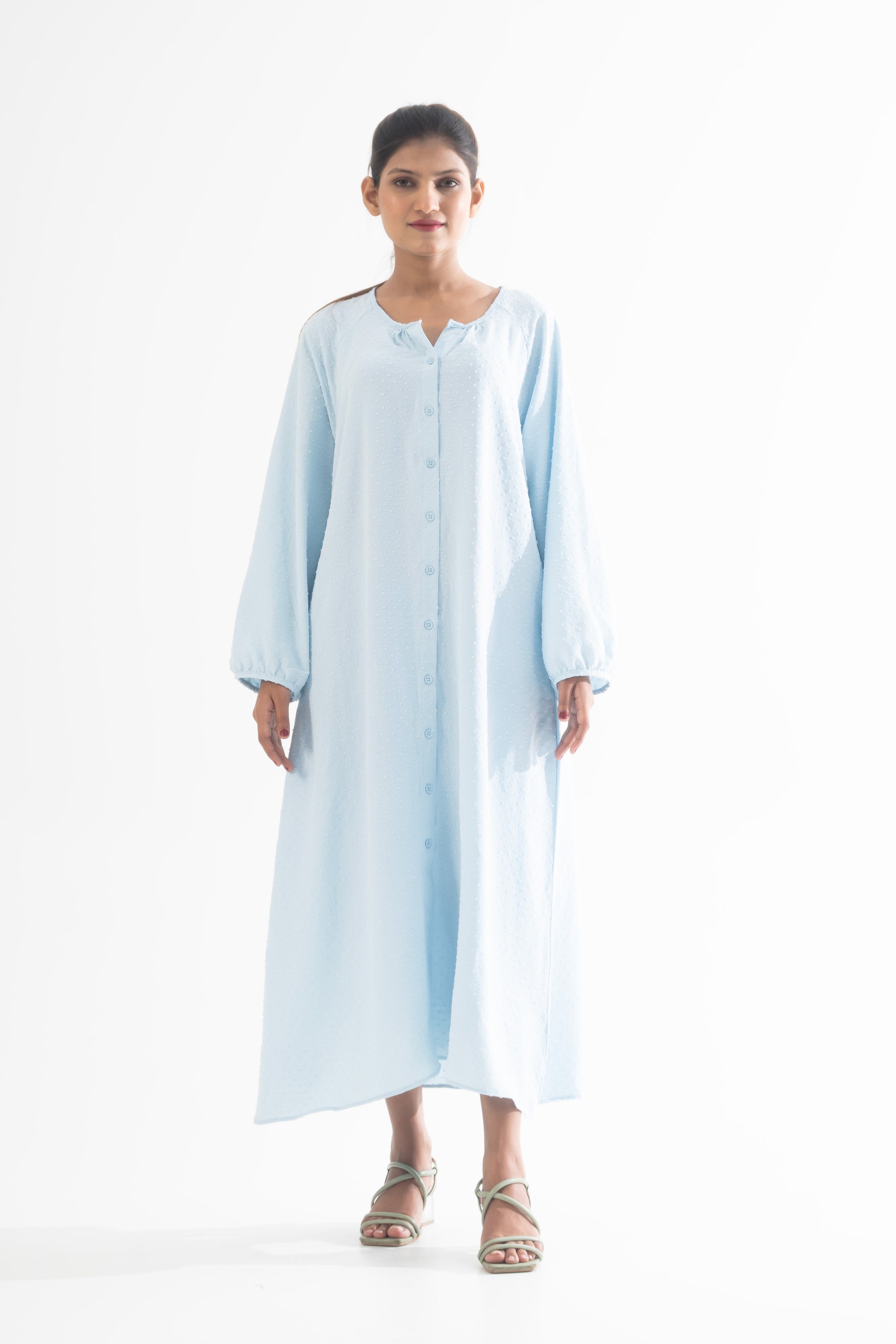 - Gathers on sleeve
