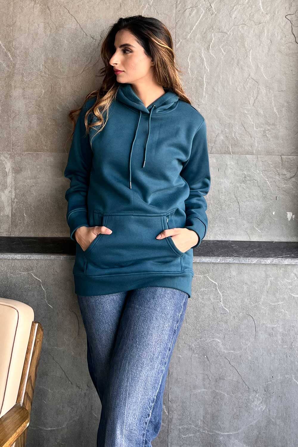 Upgrade your everyday essentials with this women's premium relaxed hoodie, featuring a clever twist on functionality. Crafted from soft, high-quality fabric, this hoodie blends comfort and convenience with a hidden zip pocket discreetly placed within the spacious kangaroo pocket
