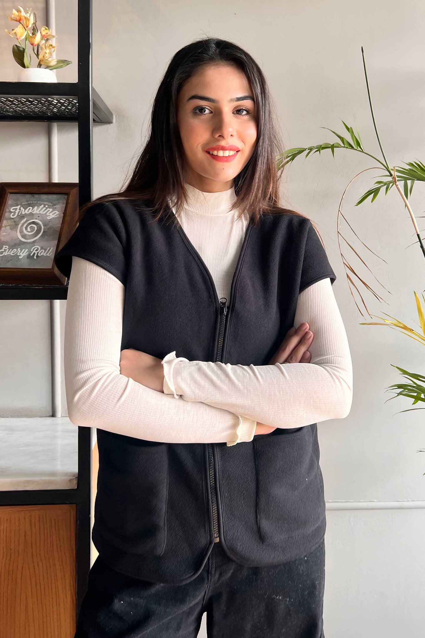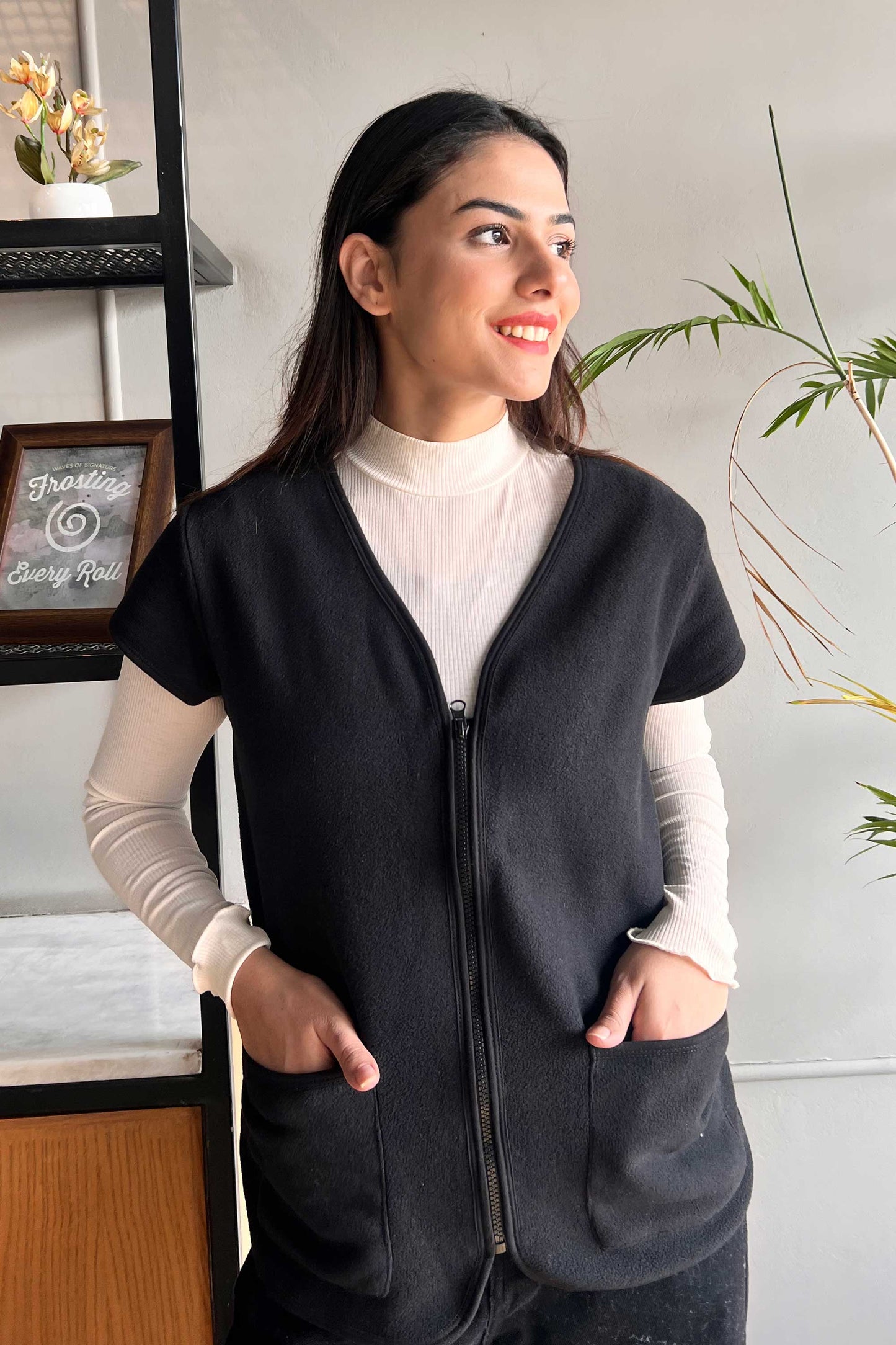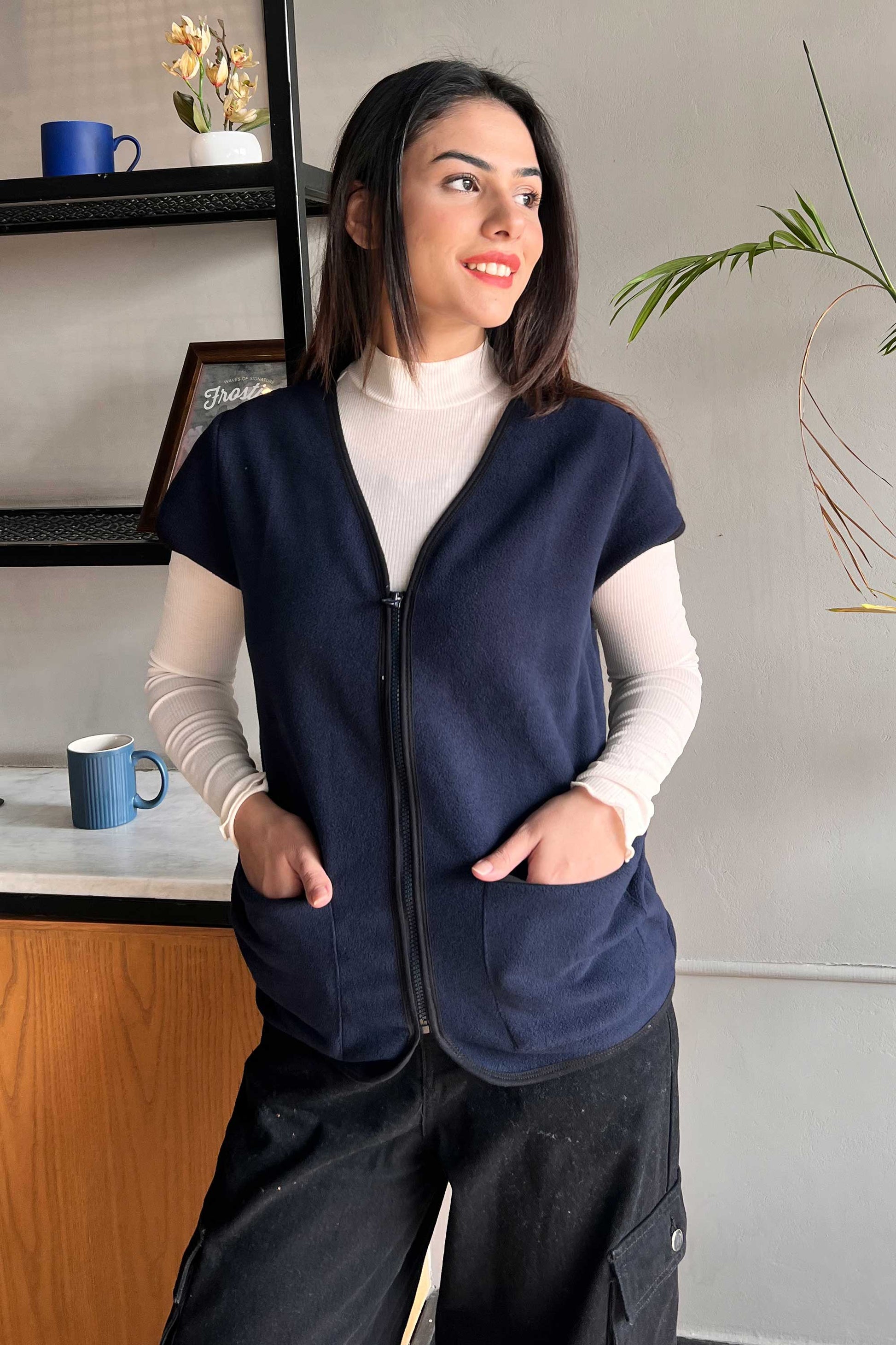 East West Women's Cap Sleeves Zipper Vest( Garments Specs )