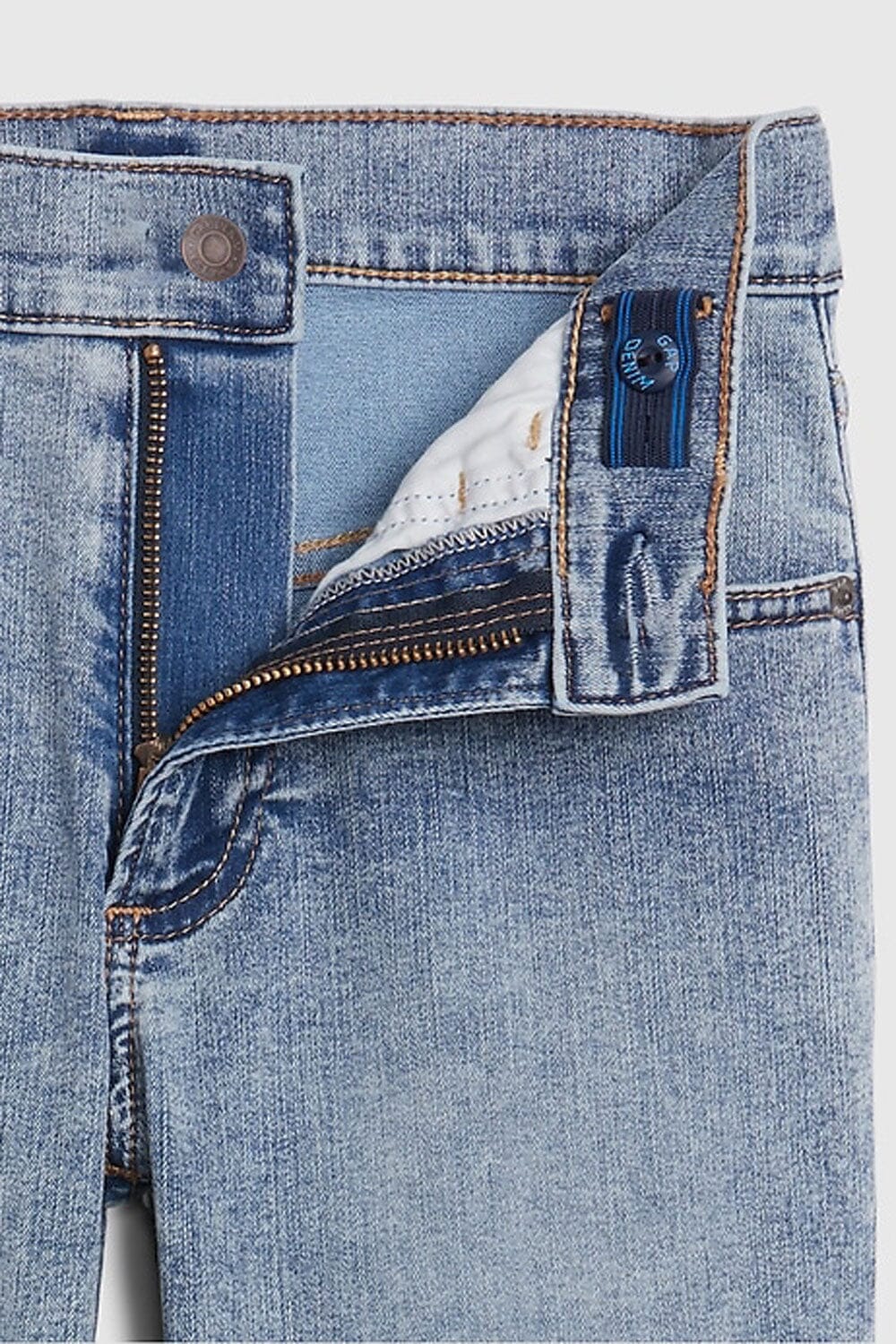 - Zip fly with button closure