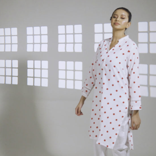 The meticulous stitching adds a tailored feel, complementing any body type. Not just an attire, but a statement in itself, this kurti is the perfect addition to your wardrobe, redefining your style. Paired with the right accessories, this kurti guarantees to bring out your personality, making you stand out.