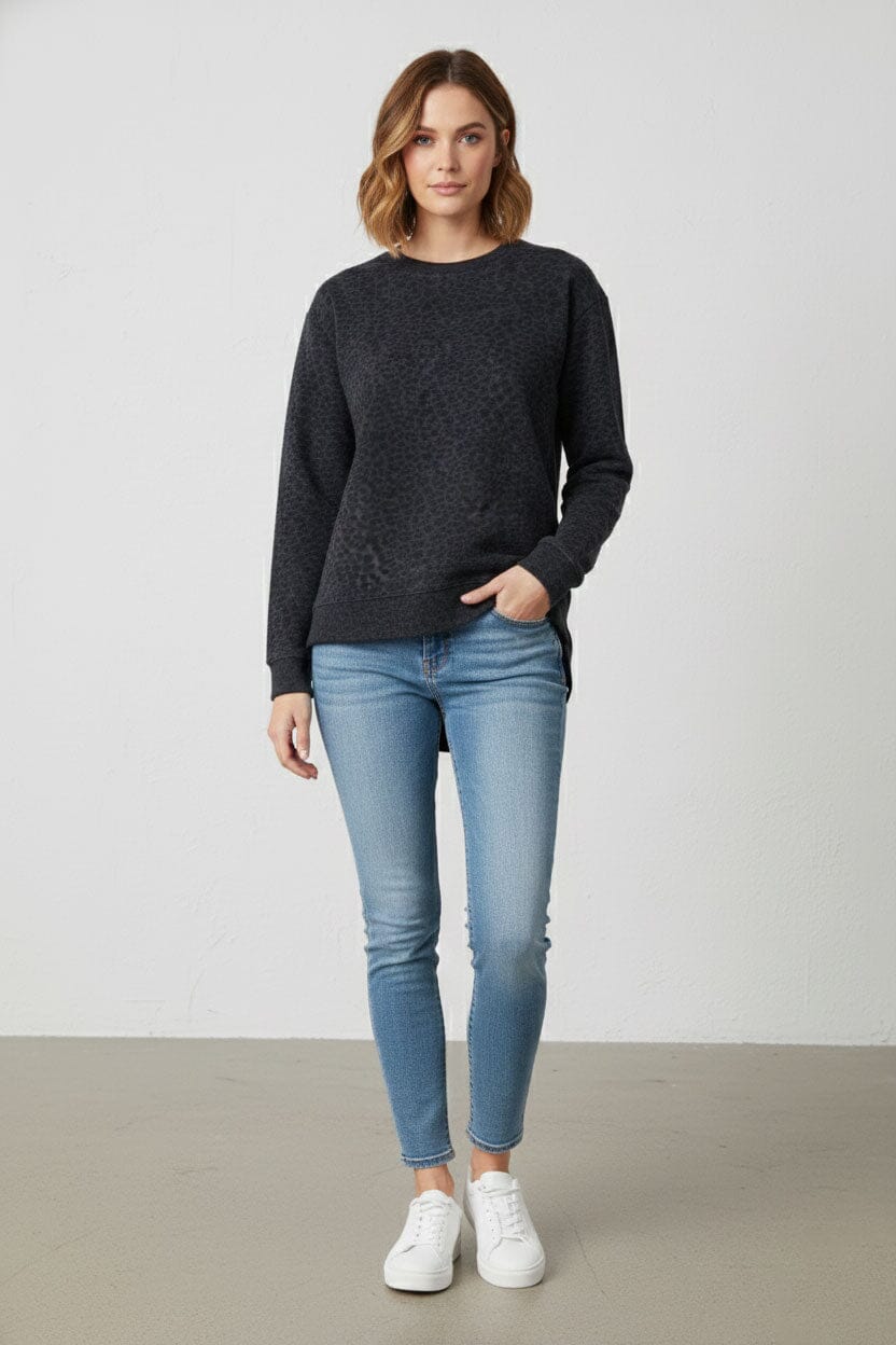 L.A.T Women's Leopard High Low Hem Premium Sweatshirt