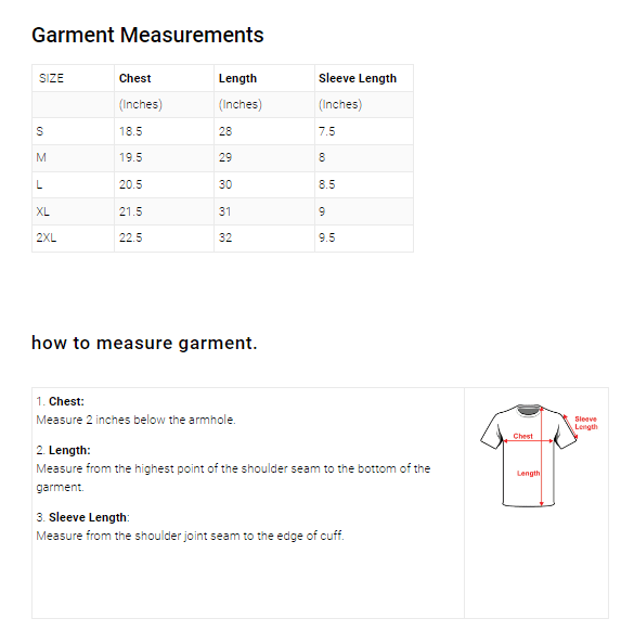 | SIZE | Chest | Length | Sleeve Length |