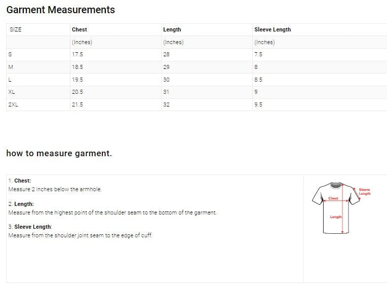 | SIZE | Chest | Length | Sleeve Length |