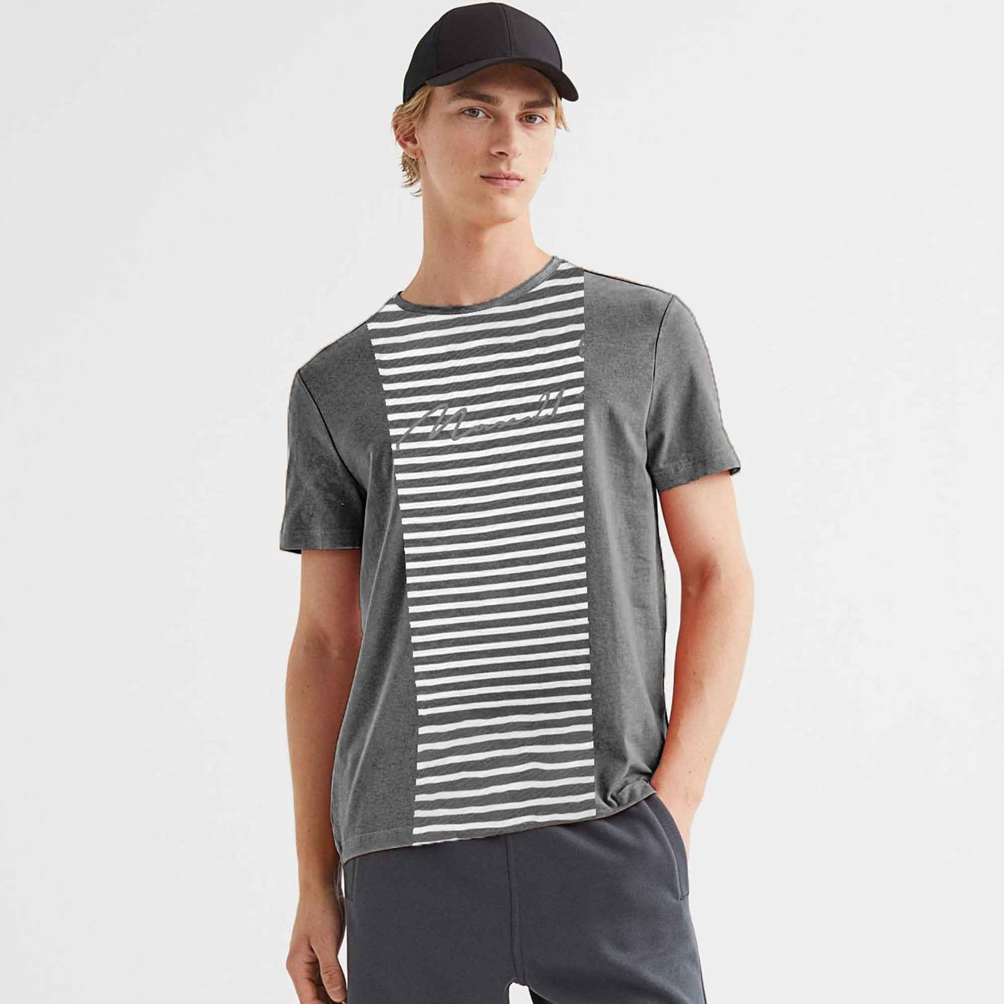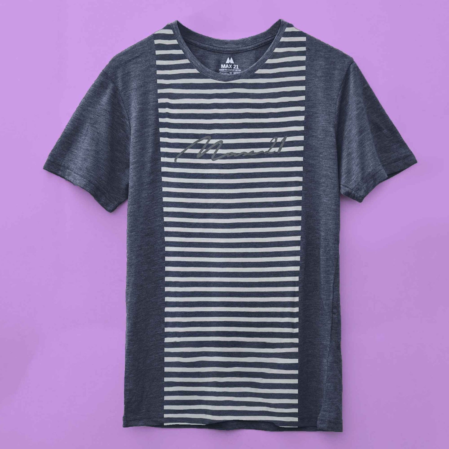 Max 21 Men's Logo Printed Stripes Style Short Sleeve Tee Shirt