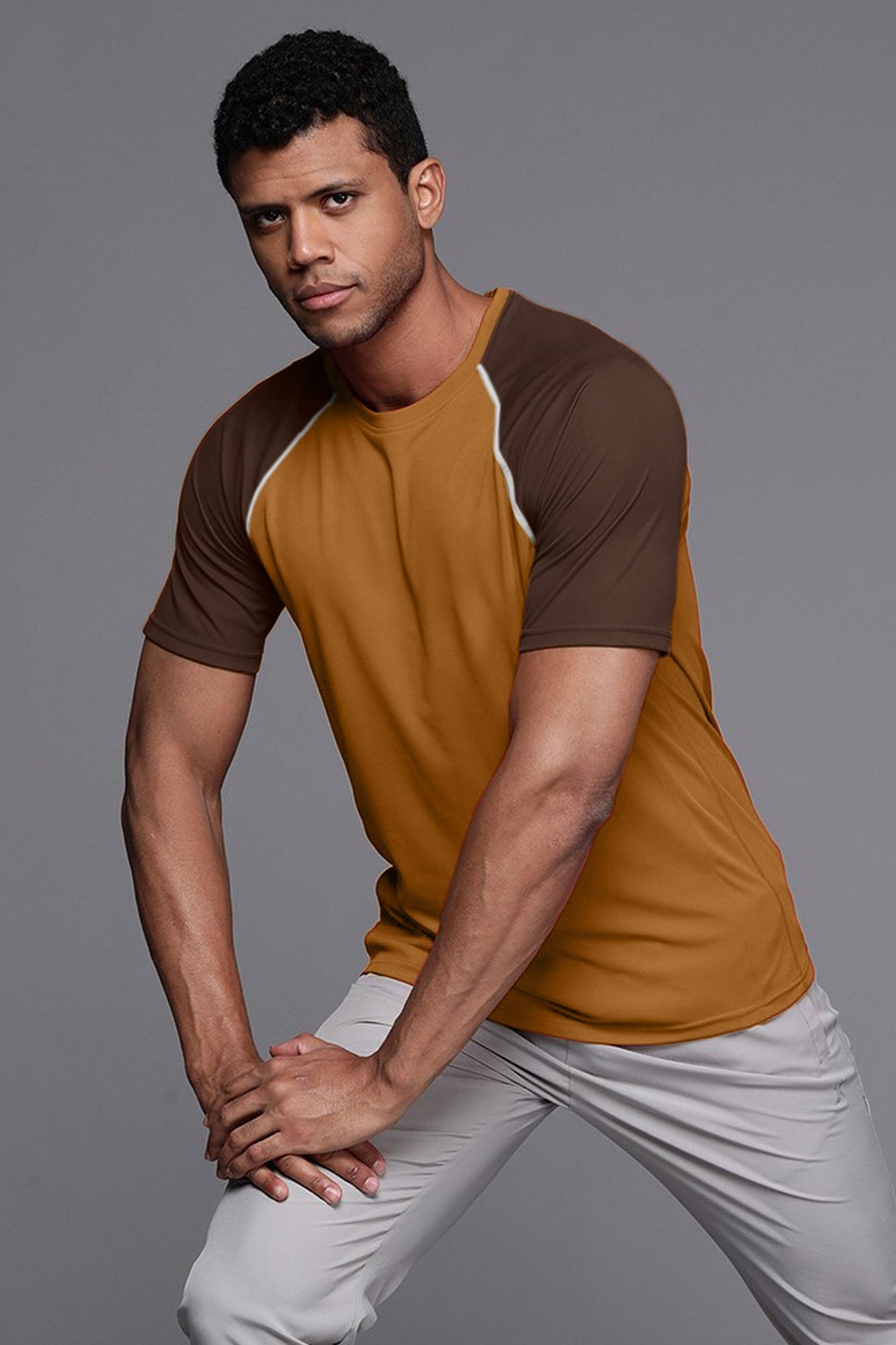 Men's Contrast Raglan Sleeve Classic Crew Neck Tee Shirt