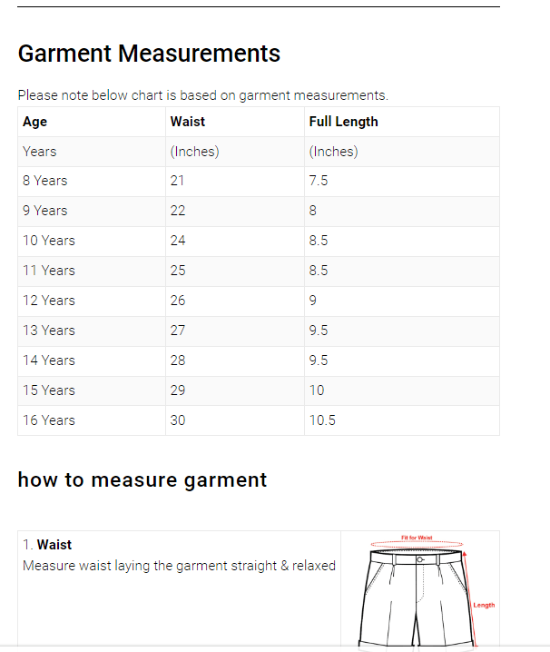 | Age | Waist | Full Length |