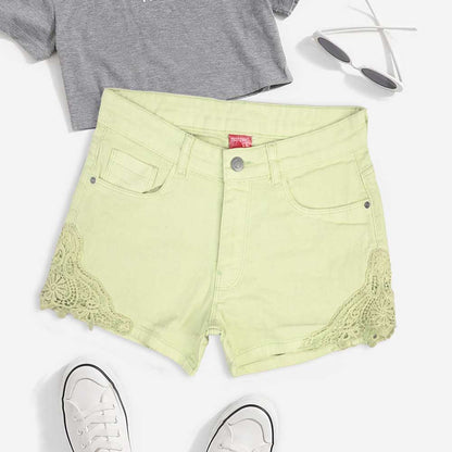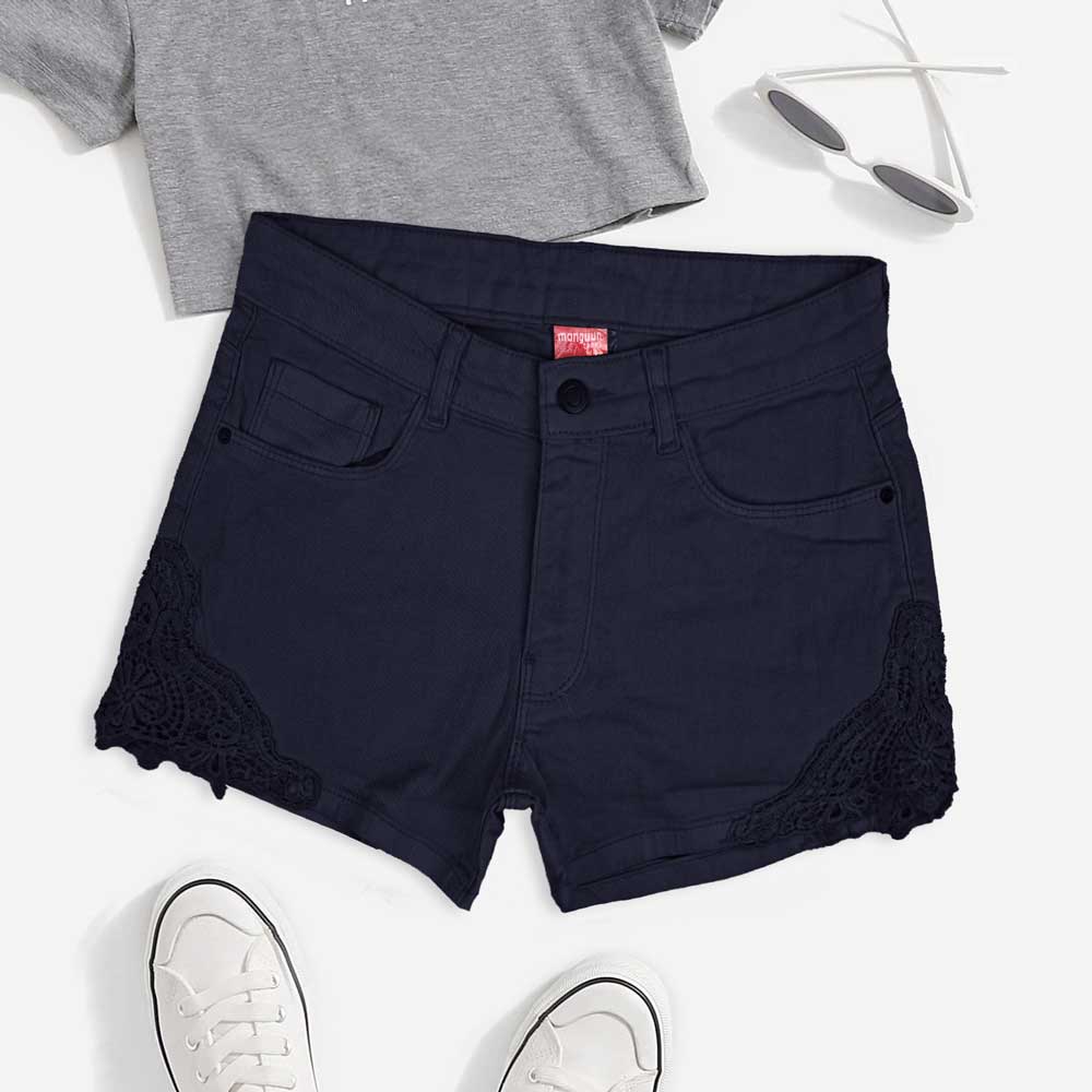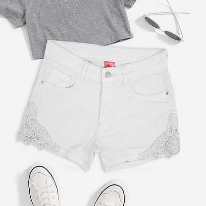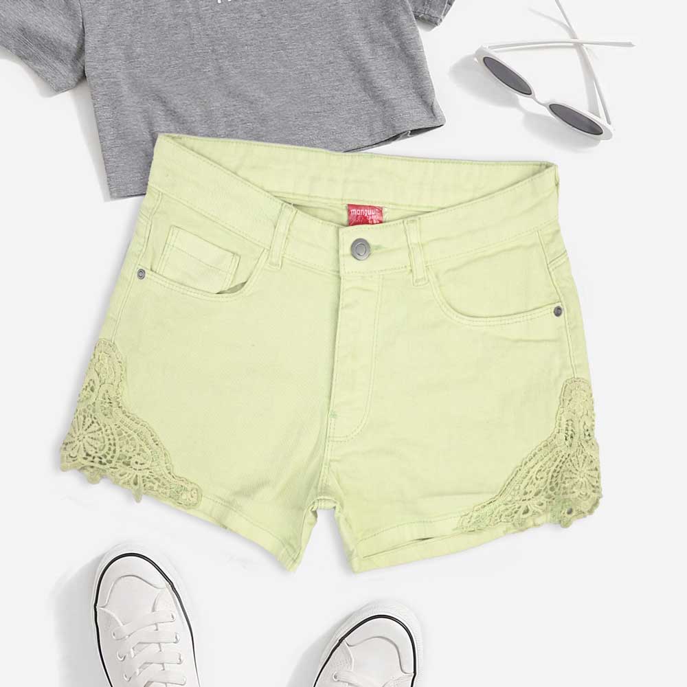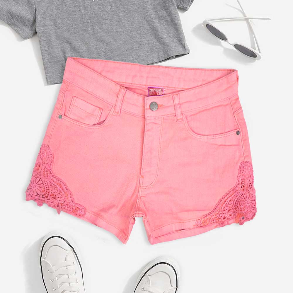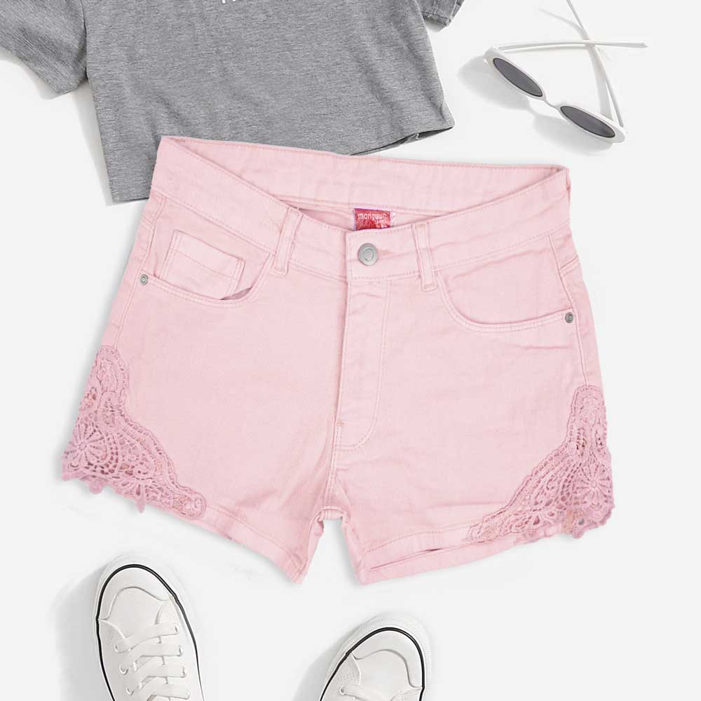Monguun Girl's Floral Lace Design Denim Shorts(Garments Specs)