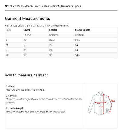 Nexoluce Men's Tailor Fit Casual Shirt ( Garments Specs )