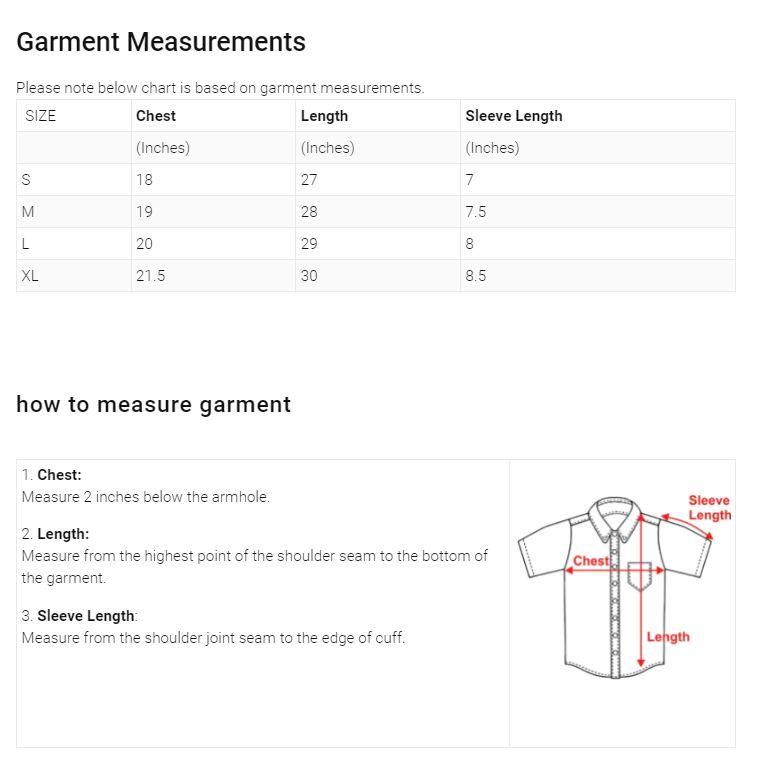 | SIZE | Chest | Length | Sleeve Length |