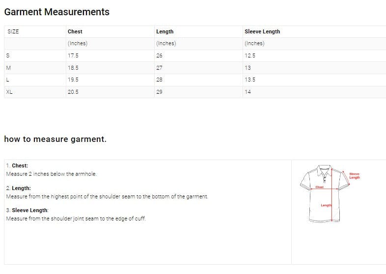 | SIZE | Chest | Length | Sleeve Length |