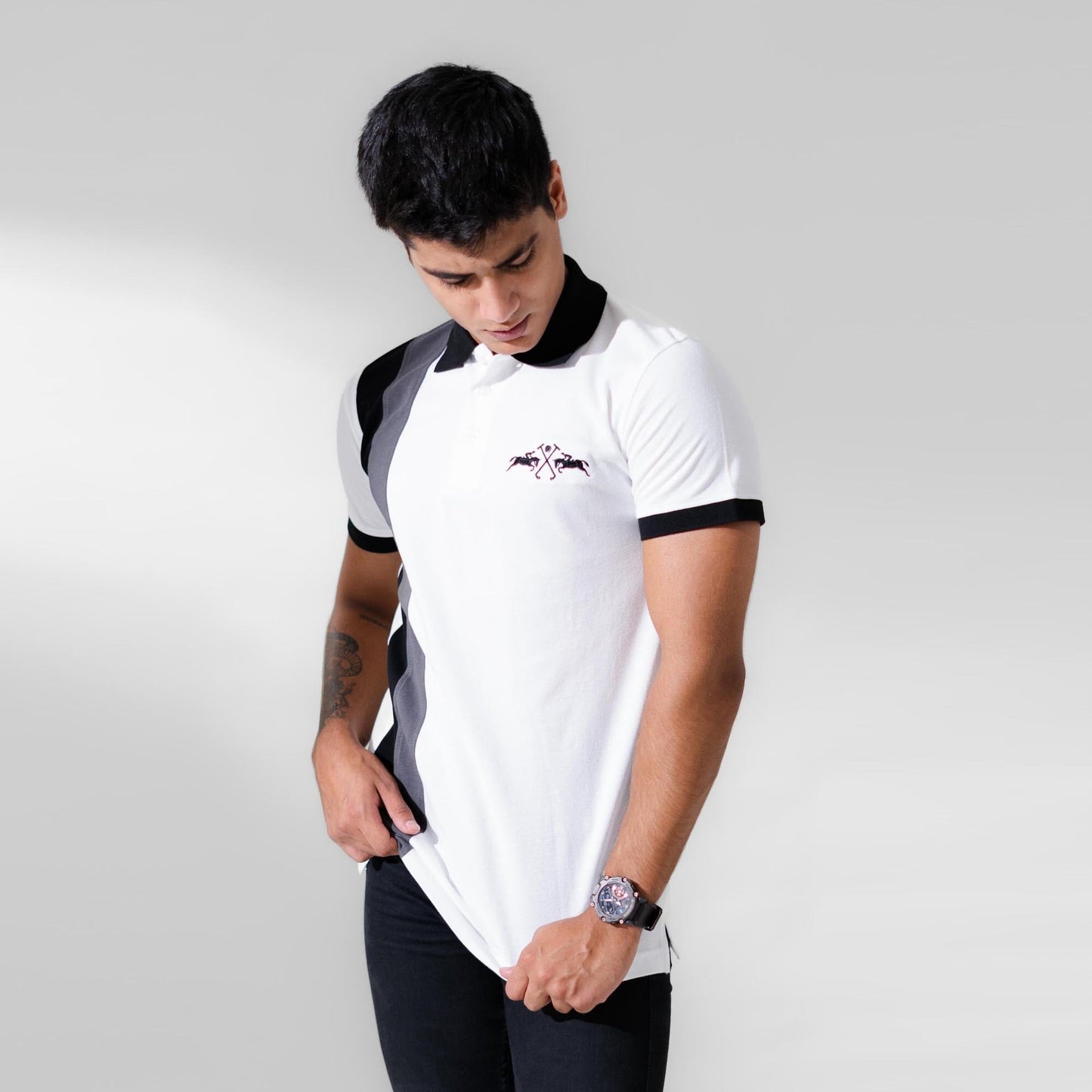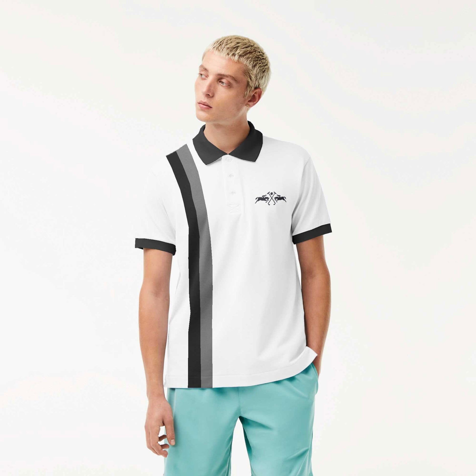 Polo Republica Men's 2 Pony Embroidered Contrast Panel Polo Shirt