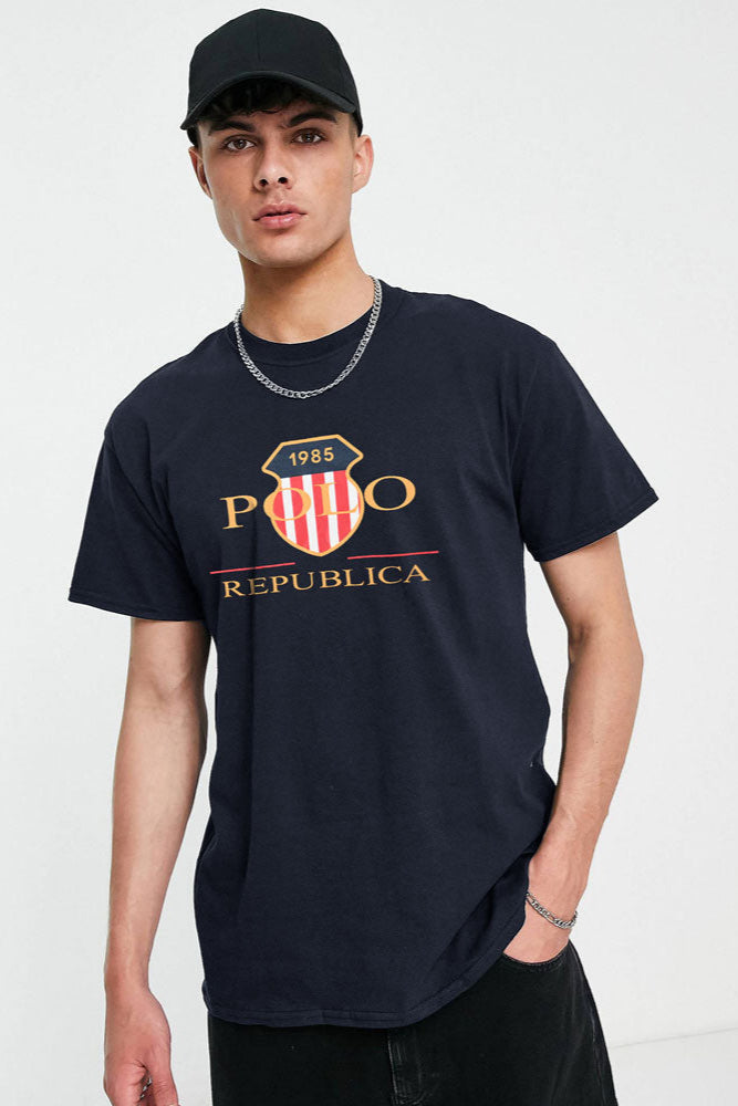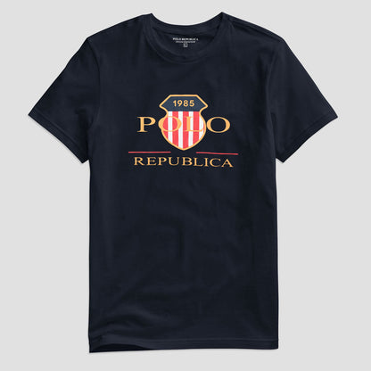 Polo Republica Men's PR Badge 1985 Printed Crew Neck Tee Shirt