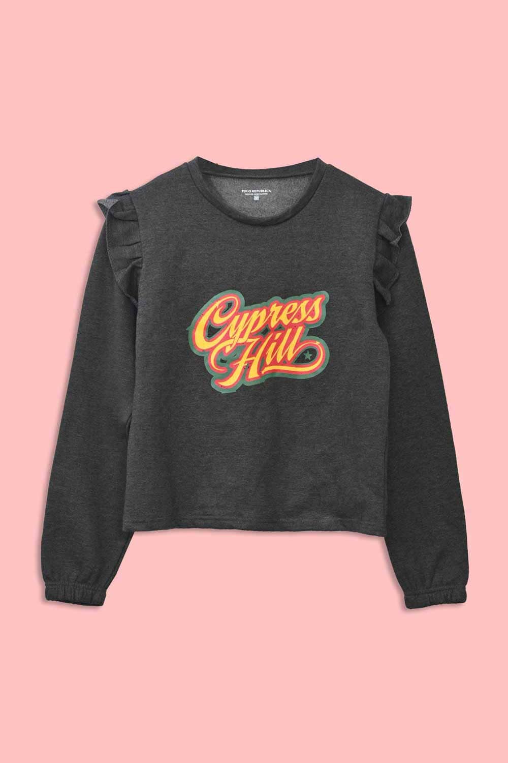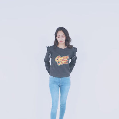 Polo Republica Women's Frill Shoulder Cypress Hill Printed Fleece Sweatshirt