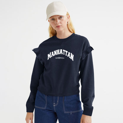 Polo Republica Women's Frill Shoulder Manhattan Printed Fleece Sweatshirt