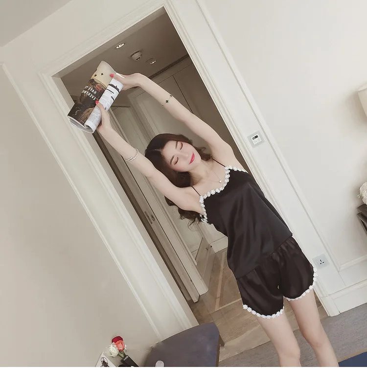 Women's Sexy Ice Silk Pajamas Summer Camisole Shorts Sleepwear Set